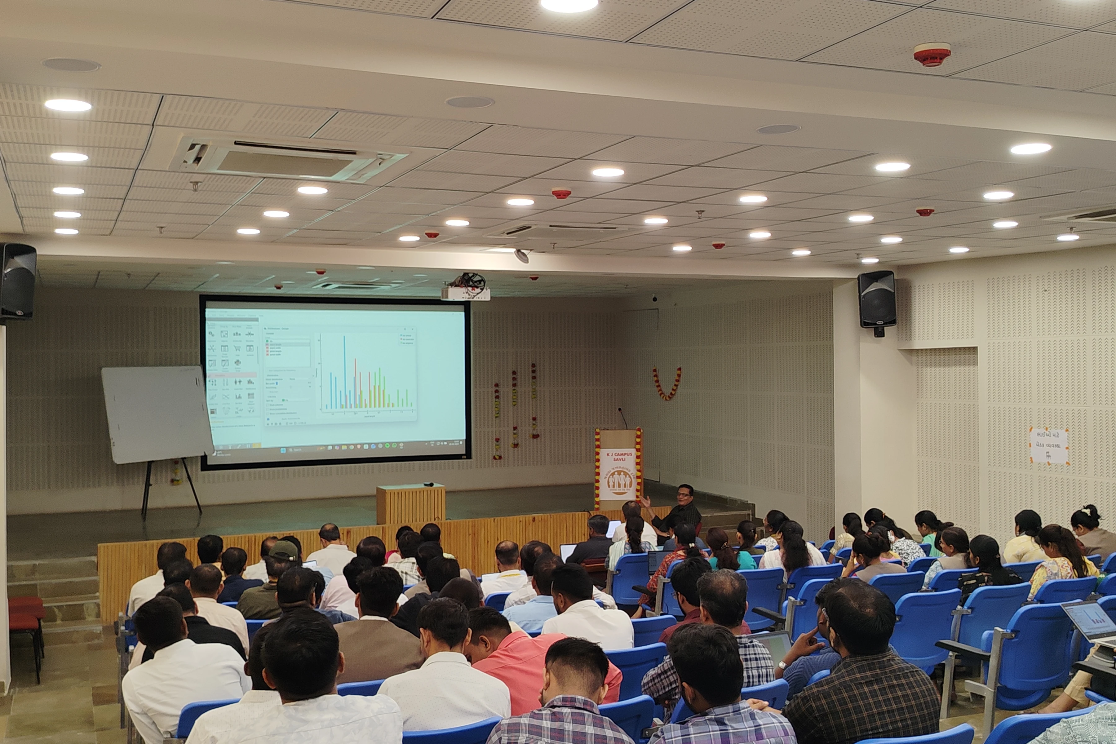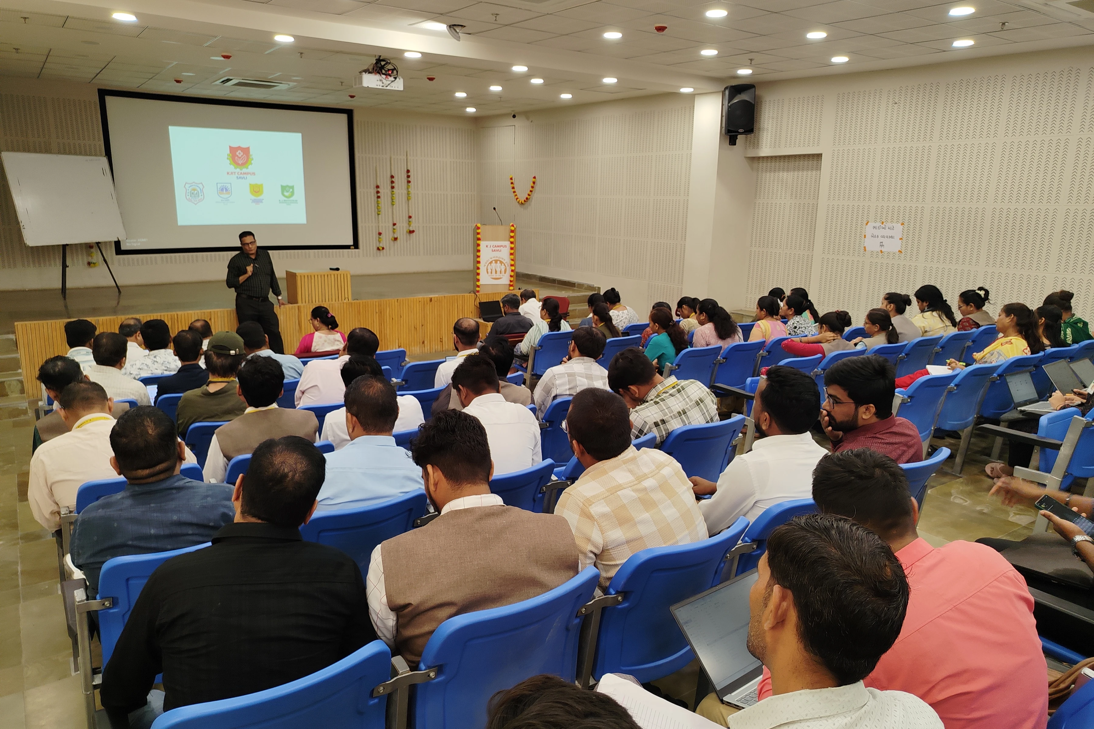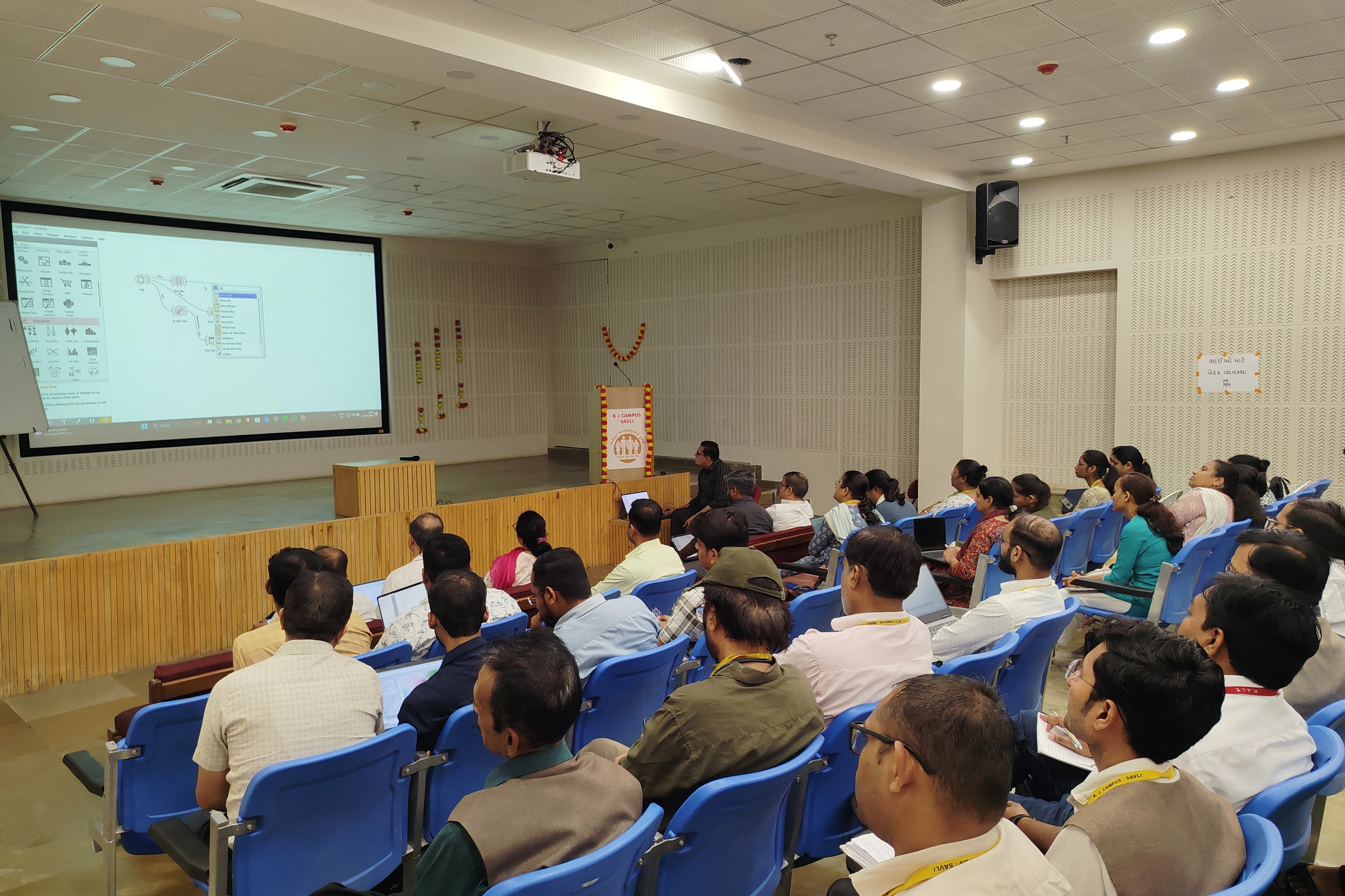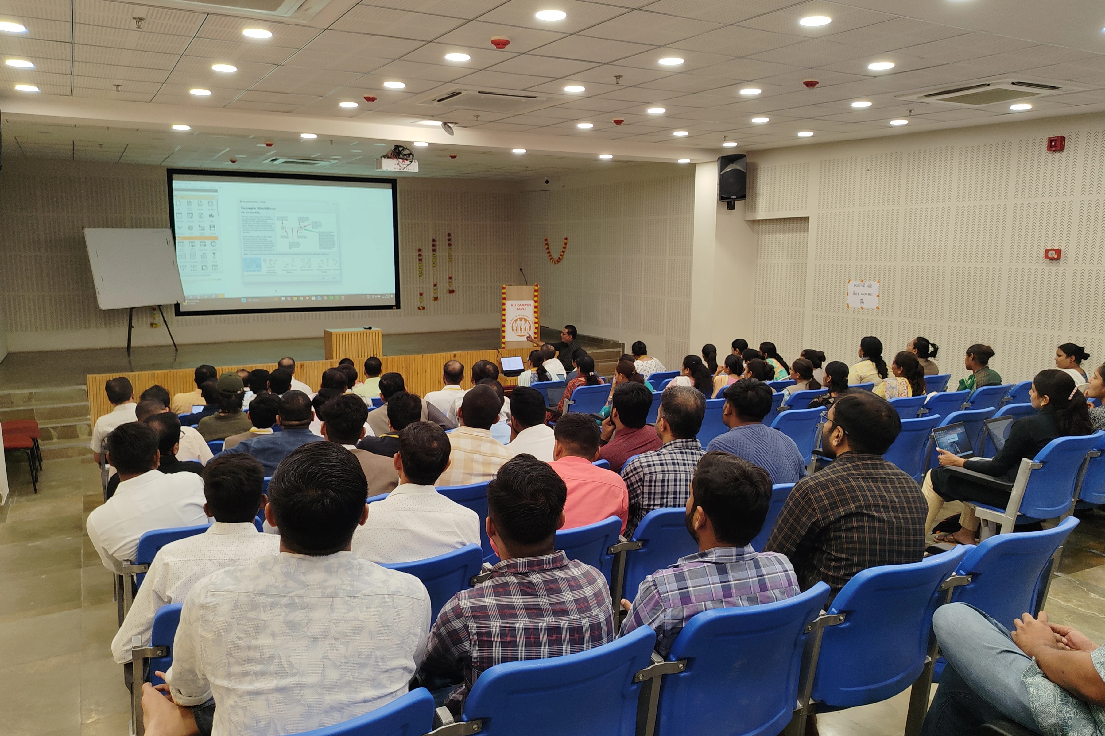 The “AI in Education” workshop was designed to introduce educators to emerging artificial intelligence technologies and their practical applications in teaching and learning. Held at the S. B. Pandya Auditorium, the event explored how AI can support personalized learning, automate assessments, enhance classroom engagement, and streamline academic tasks. Participants gained exposure to real AI tools, understood ethical considerations, and learned strategies for integrating AI into their curriculum. The workshop combined presentations, demonstrations, and hands-on activities to help educators adopt AI-driven practices effectively. The event was graced by dignitaries including Dr. Amit Ganatra, Vice Chancellor of Parul University, along with faculty members of KJ Campus.