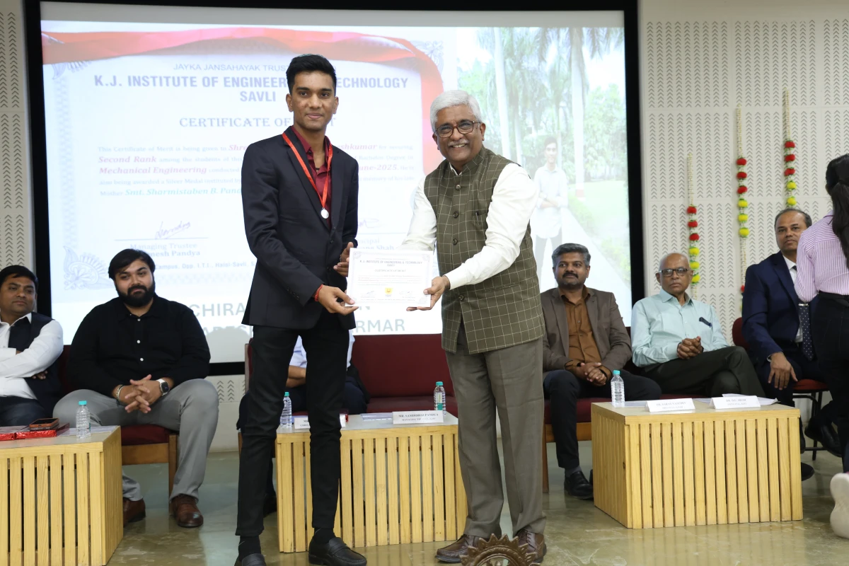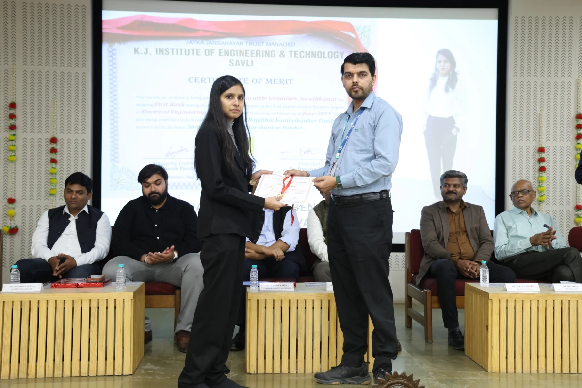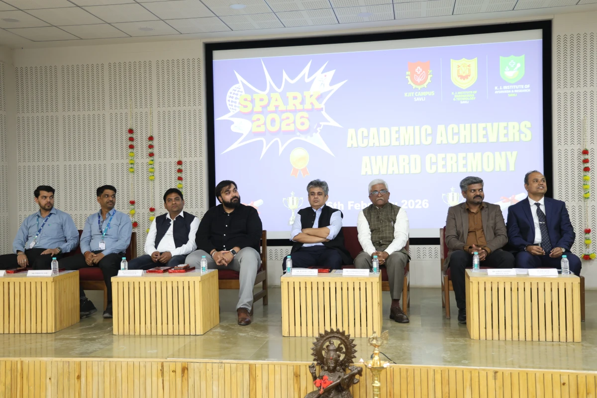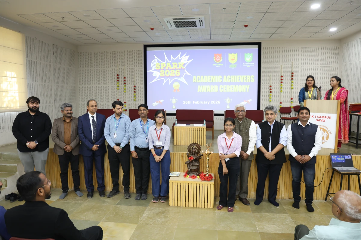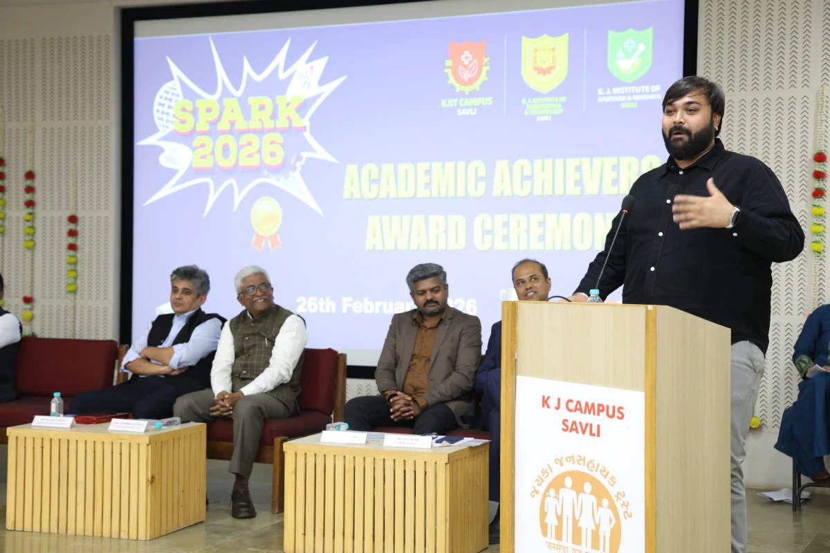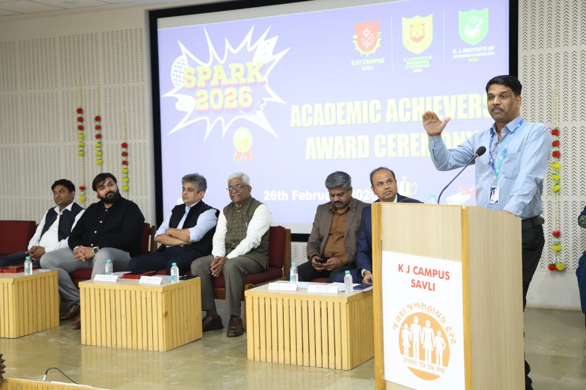 The Meritorious Students Felicitation Ceremony was organized on 26th February 2026 (Thursday) at the S. B. Pandya Central Auditorium, K J Campus Savli, Vadodara. The program was conducted under the banner of SPARK 2026 by K J Institute of Engineering & Technology (KJIT) and K J Institute of Ayurveda and Research (KJIAR) to recognize and honor meritorious students for their academic achievements.