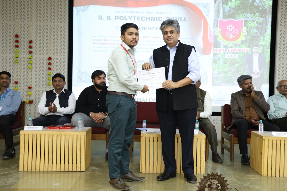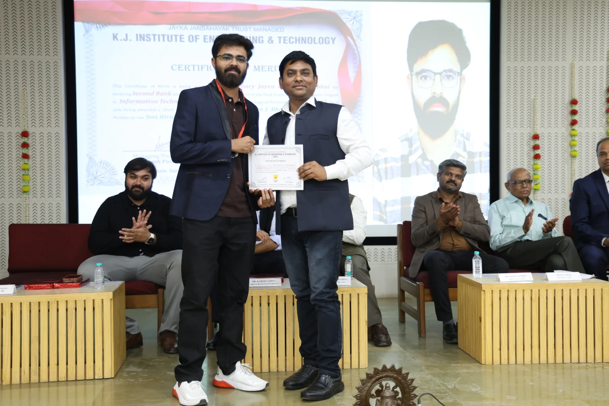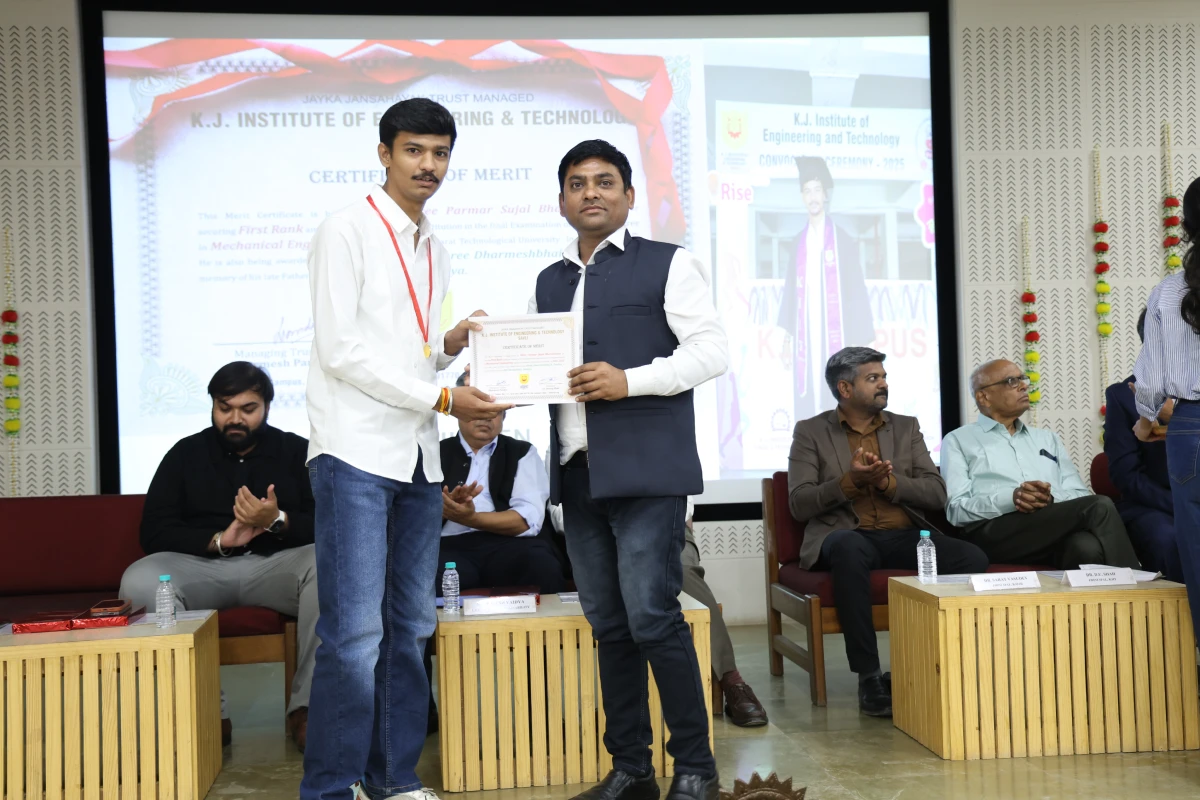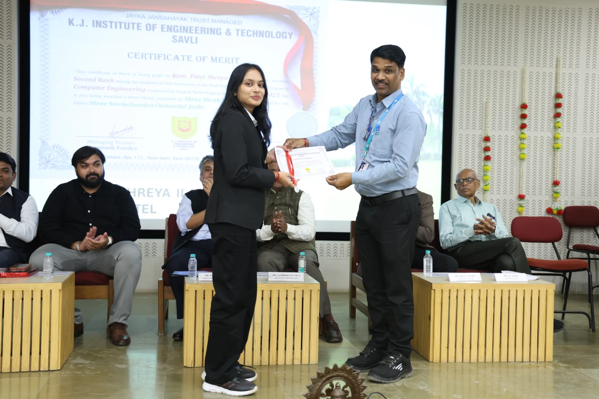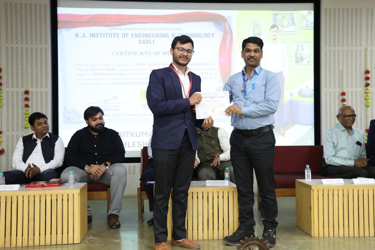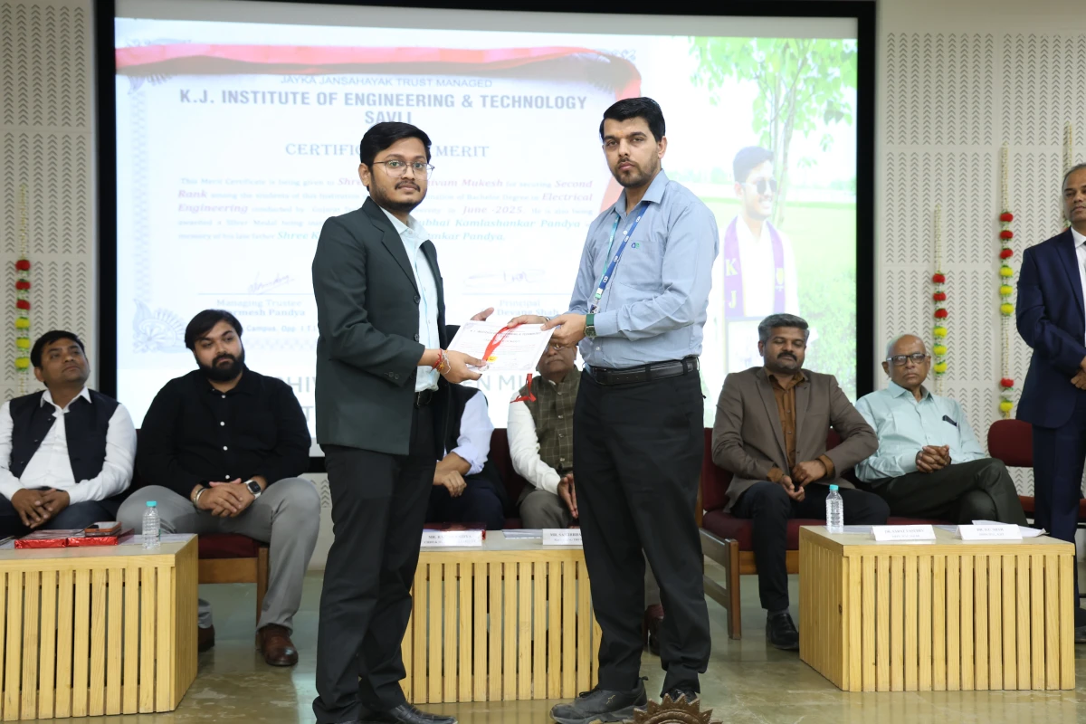 The Meritorious Students Felicitation Ceremony was organized on 26th February 2026 (Thursday) at the S. B. Pandya Central Auditorium, K J Campus Savli, Vadodara. The program was conducted under the banner of SPARK 2026 by K J Institute of Engineering & Technology (KJIT) and K J Institute of Ayurveda and Research (KJIAR) to recognize and honor meritorious students for their academic achievements.
