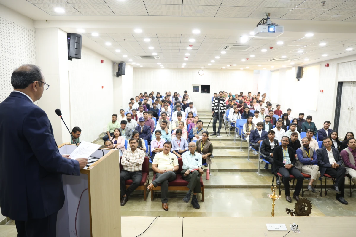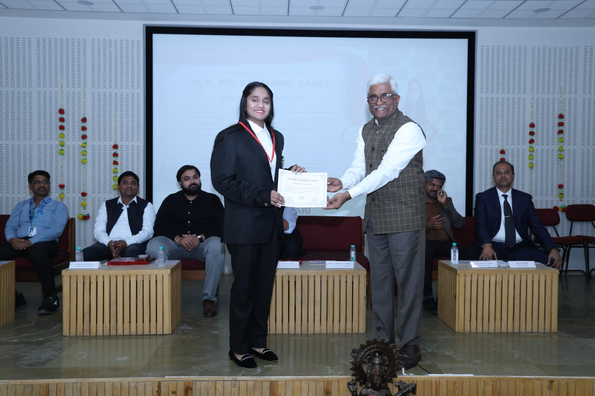 During the program, Mr. Samir Pandya addressed the audience and shared motivating thoughts with the students. Following this, Dr. D. U. Shah, Principal of KJIT, presented the Annual Report of the institute, highlighting academic accomplishments, institutional developments, and achievements of the past year.